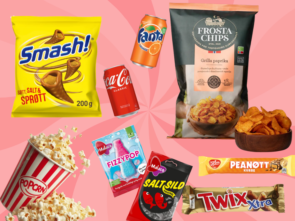 😈 1–2 poser overraskelsesgodteri – kan være alt fra Jungelvrål til Fizzypop, Sour Patch Kids eller Godt & Blandet. Du vet aldri helt hva du får, men det blir godt.